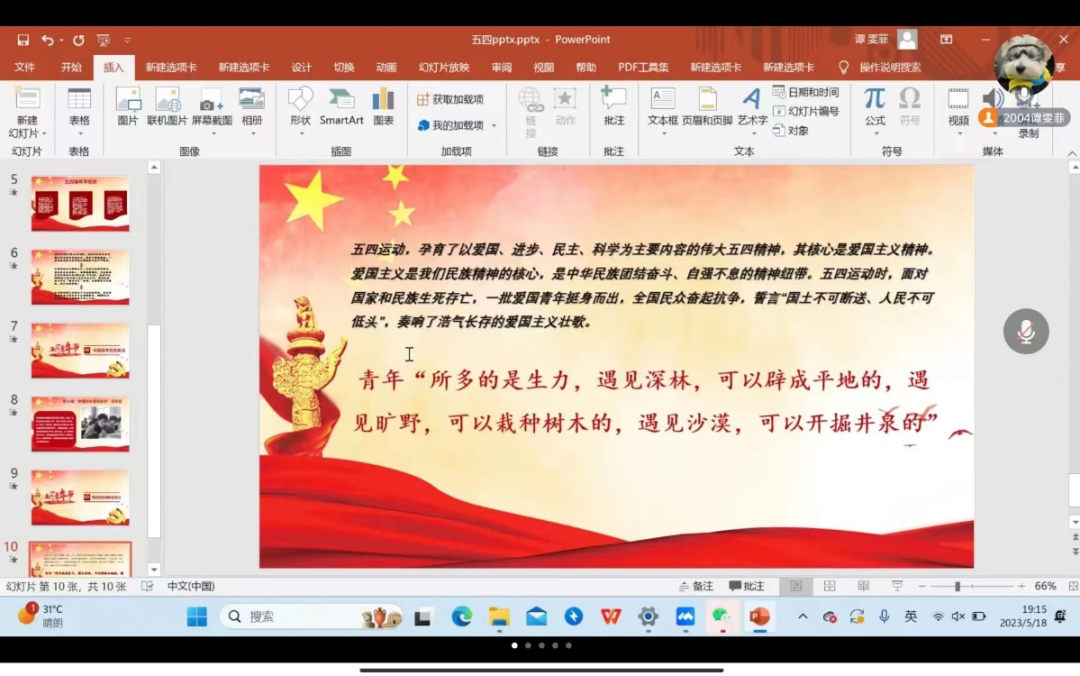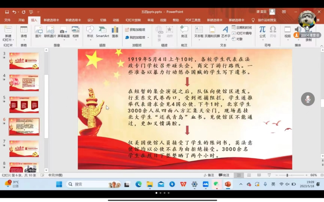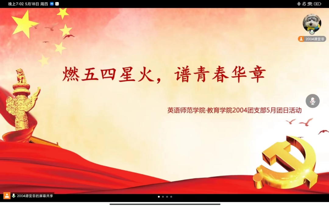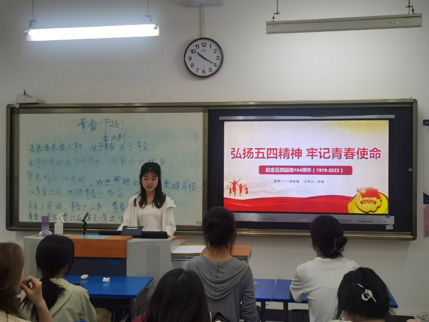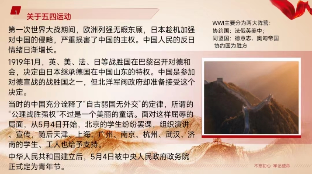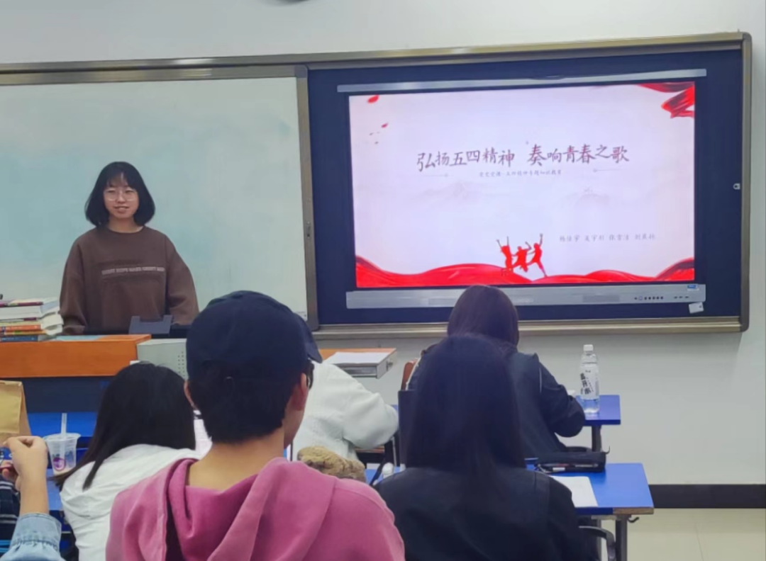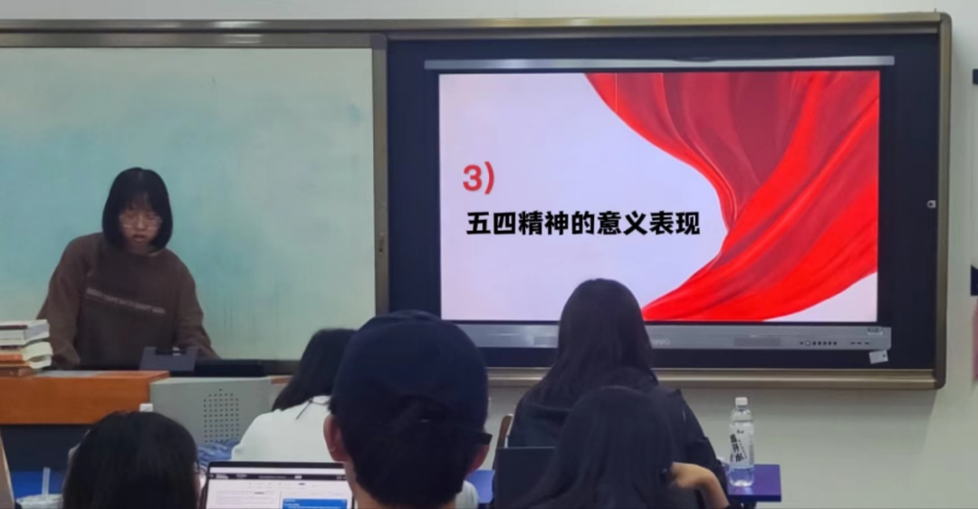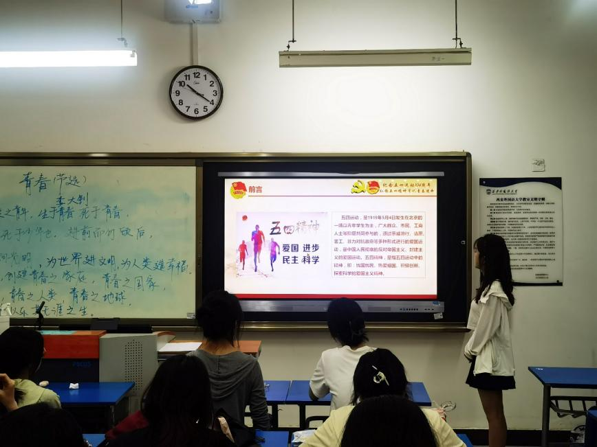 (一)首先,团支书谭雯菲通过细致的时间线,向同学们讲述了五四青年节的历史由来。