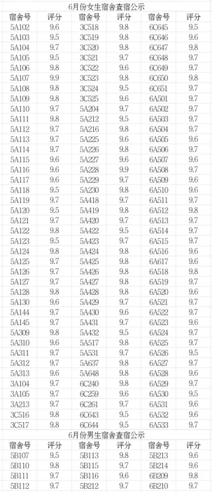 经宿管会和权益部检查评分,现将本次宿舍和固教卫生检查结果公示如下:
