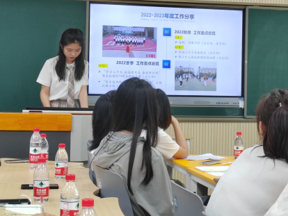 团学骨干代表依次做工作分享。西藏民族大学外语学院的团总支代表、主席团代表、心理协会会长以及新媒体中心负责人依次进行工作内容和工作心得的分享。不仅向我们介绍了西藏民族大学外语学院严谨规范的学生管理办法,也呈现了许多独具特色的学院活动,展现出严谨的工作态度和娴熟的工作技能。许多先进的工作方法值得鸭奈飞