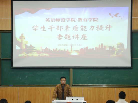 于11月15日晚邀请学生处处长丁铭在SD107开展学生干部素质能力提升专题讲座。