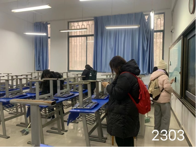 多数教室环境干净整洁,桌椅摆放整齐,但个别教室存在垃圾未及时倾倒、讲台桌摆放杂乱等问题,希望同学们能继续加油,共同打造干净整洁的学习环境!