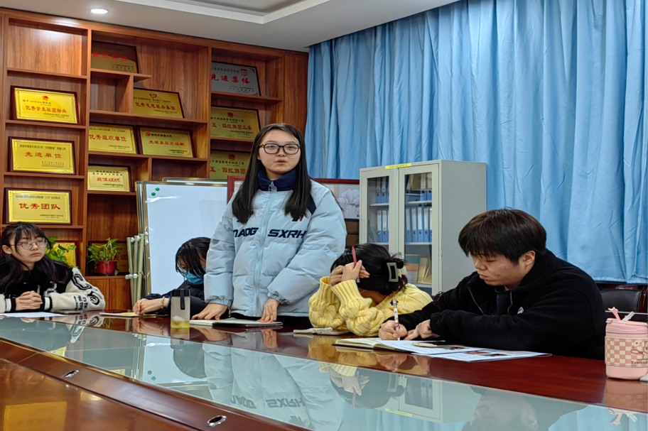 会议第二项 ,分团委书记晁梦雨老师带领与会成员对分团委上学期的工作进行了总结复盘,对团学干部队伍的辛苦付出表达了肯定与认可。同时,晁梦雨老师也指出了团学工作存在的问题,并提出了以下几点建议:一是要进一步明确职责,强化大局意识,细致做好各项工作;二是要创新工作形式,畅通反馈渠道,不断完善团内考评机制;三是要直面挑战,勇于承担,在实践中练就过硬本领。