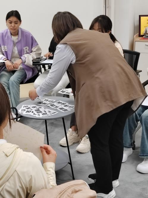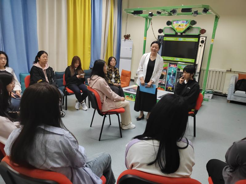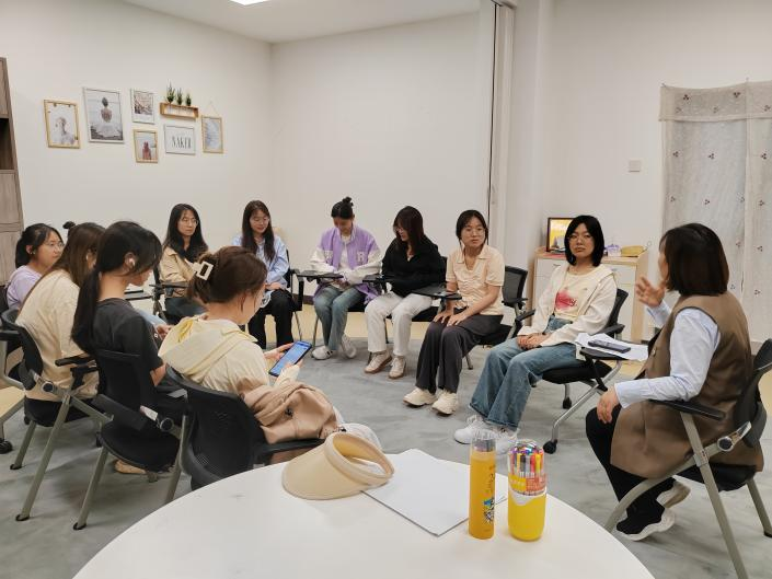 梁老师首先与大家进行了简单的自我介绍,让同学们彼此都浅浅地互相熟悉一下,便于后续活动的开展,大家围圈而坐,拉近距离的同时也能更好的注视彼此,培养自信。