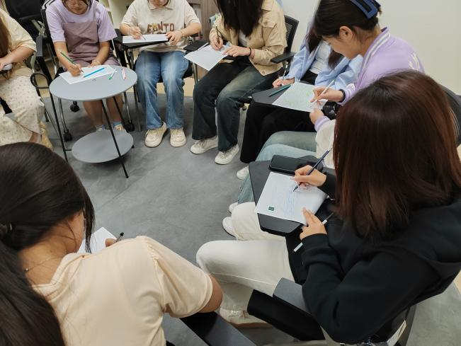 随后,老师通过报数来分组,奇数为一组,偶数为二组,组内讨论并且总结了平时处于高压状态时可能出现的情绪反应与躯体反应,大家在组内畅所欲言,纷纷积极地表达了自己的想法,分享了自己的经历,老师也在倾听中不断答疑解惑,给予反馈与开导,大家在此过程中敞开心扉,培养彼此间的默契,营造了良好的和谐氛围。