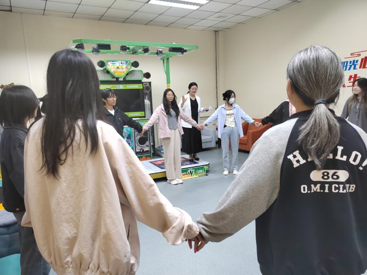 5月6日,我们邀请了刘云丽老师在我校大学生活动中心为同学们带来了“减压赋能”团体心理辅导,本次活动以“我给压力瘦个身”为话题,以一次热身小游戏:青蛙绕口令开始,同学们手拉手,放下陌生与距离,在欢笑中开始了本次活动。