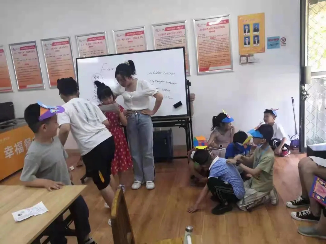 课前,志愿者老师引导孩子们做了英文自我介绍,帮助同学们熟练使用相关句型。