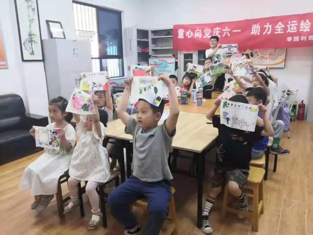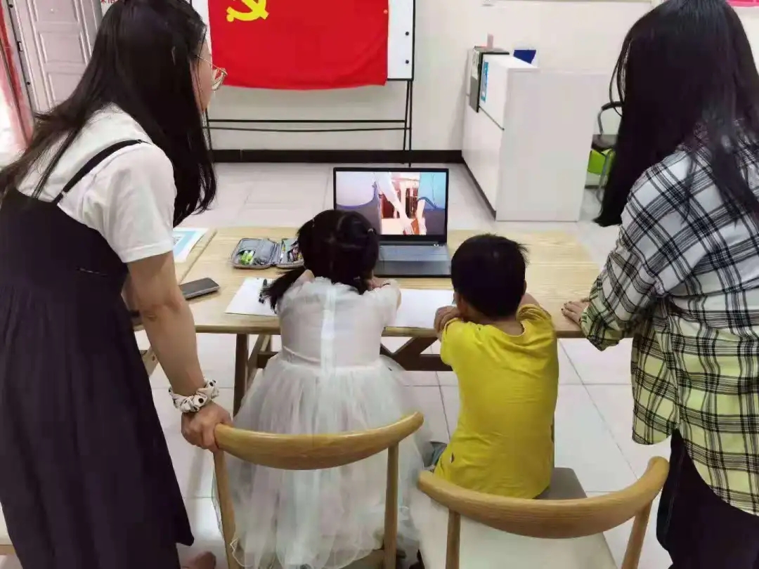 课堂伊始,社区负责人为孩子们展开“十四运”和“建党100周年”主题绘画教学。每一位小朋友都认真学习,在志愿者老师们的帮助下,小朋友们发挥灵感,从不同方面表达了自己对党的热爱和祝福以及对“十四运”成功举办的期待。