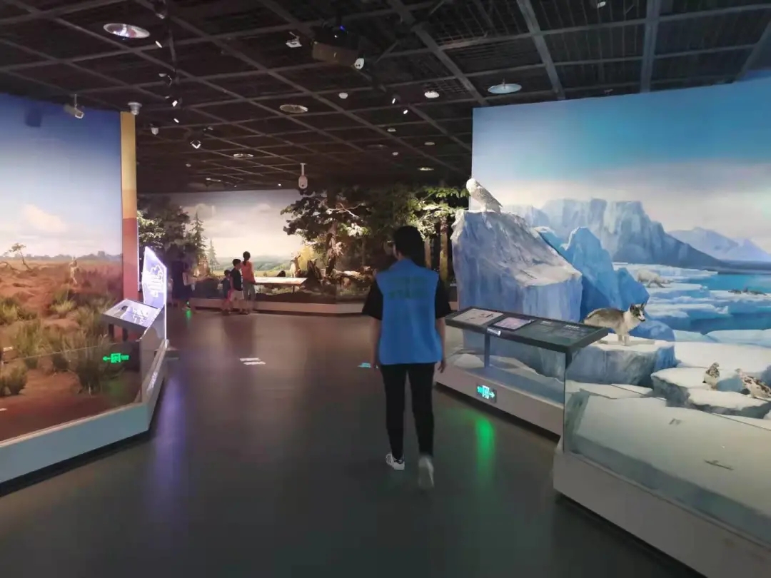 工作伊始,志愿者们便积极地适应,熟悉自己的工作,随着时间的推移,大家越发熟练,工作效率也大大提升。一眼看去,穿着蓝色马甲的志愿者们穿梭在游客之间,用最柔和的言语,最真诚的微笑为游客们指路,用最负责,最认真的态度保护着馆内的标本。