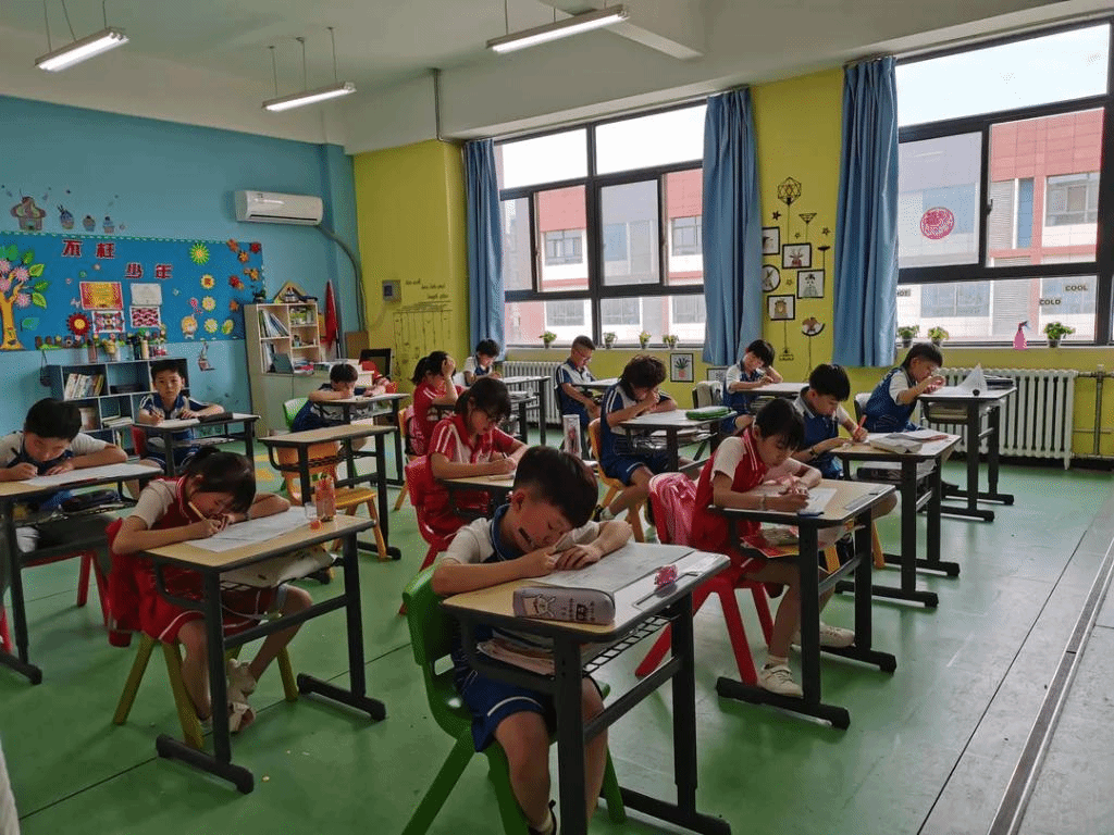 21名同学按照语文和数学方向划分,以两人为一组,每一组各有一名实习指导老师带领,跟随实习老师在所负责的班级进行观摩和学习,并自由与实习指导教师进行交流与探讨。由于近日有期末考试,各个年级都在为其积极准备,同学们除了日常教学的观摩外,还看到了考试准备期间师生们的活动,从不同教师讲评试卷的风格体会学生如何能够更有效理解知识点,回顾本学期所学内容,部分同学还参与到评阅试卷、管理课堂中,真实地体会到小学在教学、考试等不同阶段的日常工作开展,不再是参观者,而是以管理者的身份融入班级。