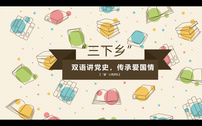 大家好!我是英师2004班的汤益凡。在这次三下乡中,我们的主题是双语讲党史,传承爱国情。我们希望能通过这次活动,主要以宣讲党史为主,将党史精神传递给更多小朋友,让他们在心里埋下爱党爱国的种子,同时教授其中涉及到的一些英语单词,调动起小朋友的英语学习兴趣,还会开展形式丰富的其他内容如书法课和疫情防控小讲堂,陪小朋友们度过一个丰富多彩的假期。希望通过这次活动我们和小朋友能够得到共同进步。