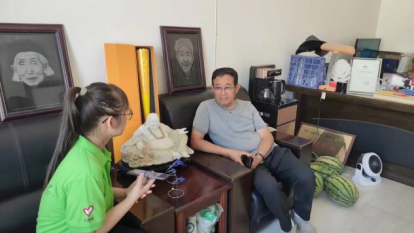 Finally, we went to his office to interview him. During the interview, he said that the company's main business was to provide a large number of stone works for gardens, parks and some out-of-town manufacturers .He also introduced us to the different use scenes and uses of different stone carvings.For example, stone pavilions were generally used in parks and gardens for tourists to rest, stone Buddha statues were usually used in temples, and stone archways were generally used in parks for viewing. In addition, he also explained the difference between modern stone lions and traditional stone lions. The modern lions were generally used in front of the bank, while the traditional lions were generally used as a mascot or at the door of the family to ward off evil spirits.What’s more, he said, Suide stone carvings, as an intangible cultural heritage, needed to be well inherited and developed into a new look.He also said that Suide stone carving was well developed and can attract a lot of tourists from other places to come and enjoy it. And the stone carving industry had a good prospect in the future. Now Suide stone carving has become more and more famous, and there are many other manufacturers who take the initiative to contact orders.