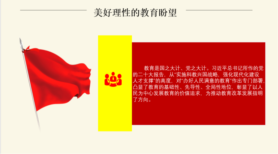 在党的领导下,中国经济、社会、民生、生态等各个方面都会朝气蓬勃地向第二个百年奋斗目标迈进,教育也不例外。新征程上的教育是充满希望的,“人民满意的教育”——是我们党对教育美好的,也是理性的期盼。