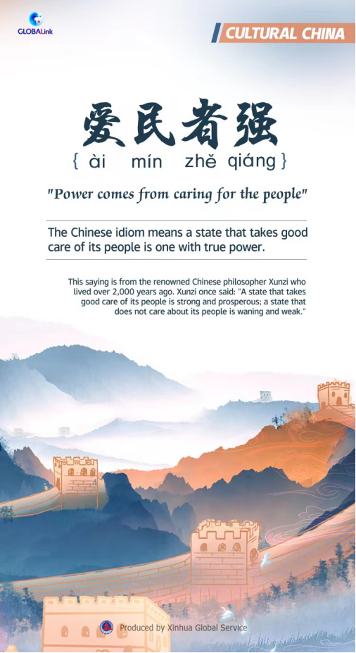 BEIJING, April 11 (Xinhua) — China's people-centered philosophy has its roots in traditional Chinese culture, as is reflected in the idiom "Ai Min Zhe Qiang", which means a state that takes good care of its people is one with true power.