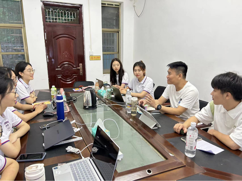 五指山市政府总督学黎东向支教团成员了解支教以来的基本情况以及支教团在水满中心学校的生活情况,并简要说明了学校的建设情况。