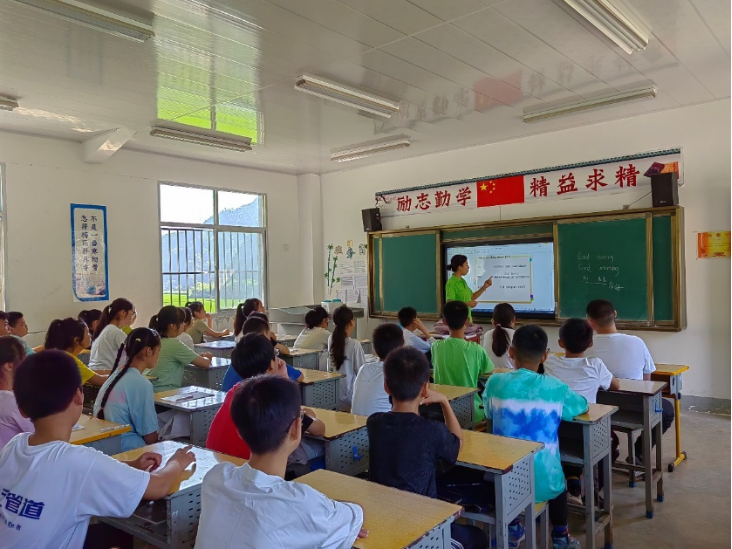 伴随着清晨的阳光,学生们各个精神饱满,神采奕奕,在校长的带领下排好队列和志愿者老师们一一见面。本次仁河口镇中心学校的学生分为新初一、新初二和新初三三个年级,授课内容主要为新学期知识点的讲解。课堂上,支教团成员采用情景化教学模式,将知识点融入到现实情境中,设计了游戏、英文歌曲等丰富多彩的活动,增强课堂上师生的互动交流,实现寓教于乐、寓学于乐。