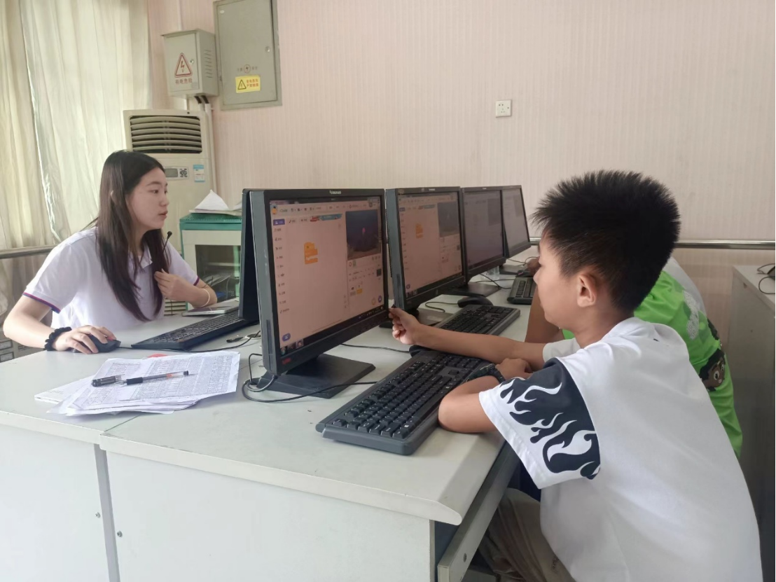 城关小学一行六人分别负责二升三英语、三升四英语、电脑绘画、编程、演讲与口才的课程。支教团队从培养学生核心素养出发,认真配合指导老师,为同学们的暑期兴趣课程带来青春活力。