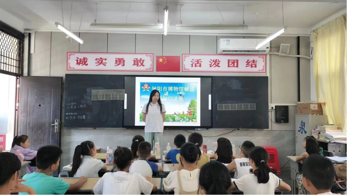除上课之外,支教团成员还带领少先队员们到旬阳市博物馆参观学习及到旬阳市老城社区进行实践。7月18日,支教团同演讲与口才班40余名“红领巾志愿者讲解员”一起来到了旬阳市博物馆,参加了2023年“红领巾志愿者,文明承传使者——我在旬博讲文物”暑期志愿者讲解员培训及志愿服务活动。在支教团志愿者的引导下,红领巾讲解员用他们清脆的童声,热情地向前来参观的各地游客讲解旬阳博物馆的馆藏文物和背后的历史故事。