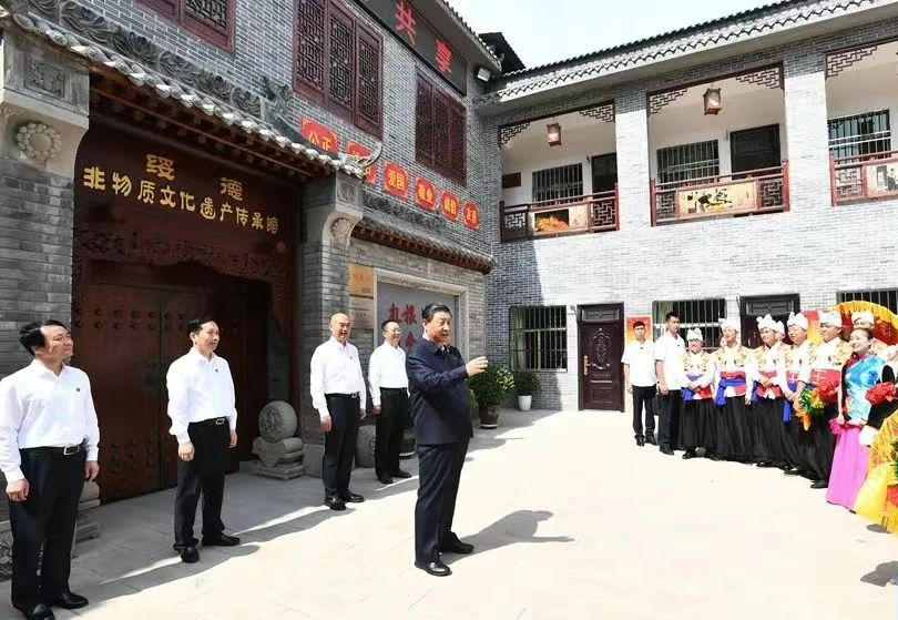 2021年9月14日上午,习近平总书记来到绥德县非物质文化遗产陈列馆,观摩石雕、绥德平安书、剪纸、民歌、泥塑等展示,对当地传统文化保护和传承工作表示肯定。