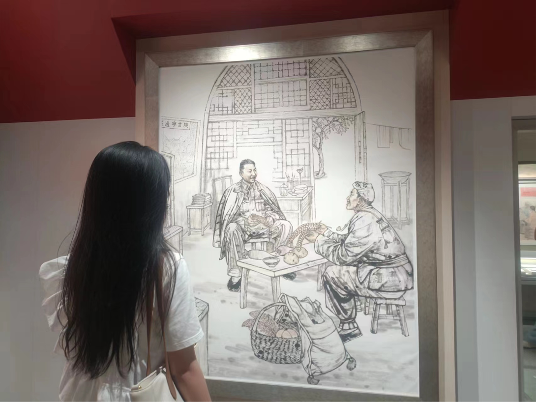 下半程,团队成员前往郝家桥展室,郝家桥展室是在原郝家桥希望小学旧址上建立起来的村情展室,展陈面积300平方米。展陈以“农村楷模”为主题,集中再现了郝家桥村发扬光荣革命传统,积极搞好生产,携手过好光景,在不同历史时期感党恩、听党话、跟党走,勤劳奋进、开拓创新,终获“全国脱贫攻坚楷模”荣耀,而今正阔步向产业兴旺、生态宜居、乡风文明、治理有效、生活富裕的“乡村振兴楷模”新征程迈进。