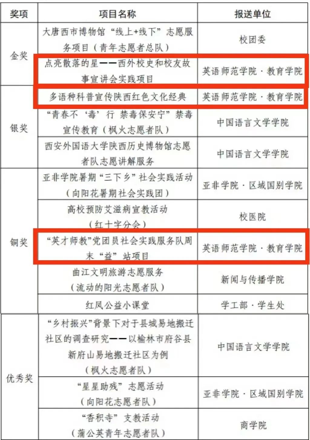 第一届“西树杯”青年志愿服务项目大赛所获奖项
