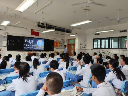 在地理学科的见习中,西外学科地理专业的同学们观摩了八初地理组贾老师给八年级学生讲授的“陆地与海洋”一课,贾老师充分运用现代信息技术直观展示了地理知识与地理现象,运用交互式平台让学生进行沉浸式课堂学习,课堂生动有趣,师生互动热烈。贾老师的先进教育理念给研究生们很大的启发。