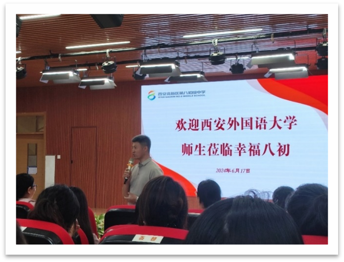 六月,骄阳似火,暑气留恋。但这风风火火却远不能掩盖西外学子们对深入基础教育课堂进行教育教学实践活动的期待与好奇。当清晨的阳光洒满校园时,西外学子便在教师的带领下带着教育事业的无限热爱和对教学实践的渴望到达西安市高新区第八初级中学,在简短的欢迎仪式后,四个专业的研究生便在八初教师们的带领下走进各自专业的课堂开始了充实且富有成效的教学观摩活动。
