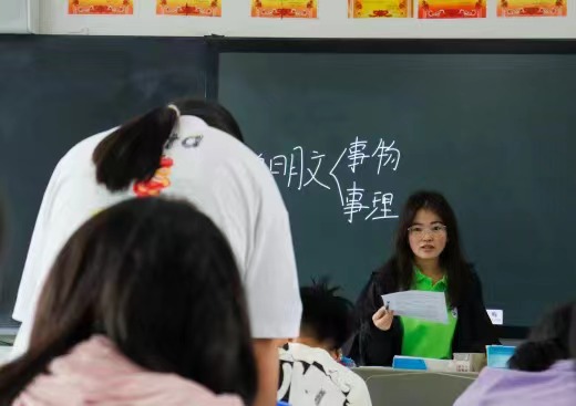 良好的心理健康是未成年人全面发展的基础,能够促进未年成人在智力、情感、社交等方面的健康成长。为心理健康课开展的更加有针对性,团队成员窦博乐、王瑞睿、赵子怡在前期与班主任沟通学生性格后,根据男女比例、年龄大小等将80余名学生分成3个班级开展心理健康活动。在保证授课内容一致的基础上,根据各班情况又设计了小游戏,通过情绪ABC、萝卜蹲等游戏进一步放松学生心态、打开学生内心。课堂最后十五分钟,学生们纷纷写下自己对于青春期的疑惑,偷偷放上讲台。三位老师认真回信,为每一位处于青春懵懂阶段的中学生解答。