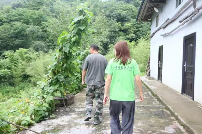 由于部分村民居住在山腰,唐书记热情地开车带我们上山。路上,唐书记多次停下车和村民热情地介绍我们,方便我们开展家访。通过与村民沟通了解到,金坪村是安康市农科院的试点村,很多农作物都在此试点后向其他地方推广。同时,金坪村还大片种植有绞股蓝、广木香等近十种中药材。由于海拔高,金坪村成为了镇上农业的“试点村”,与此带来的也是家家户户深耕农业,导致家庭教育的部分缺失。