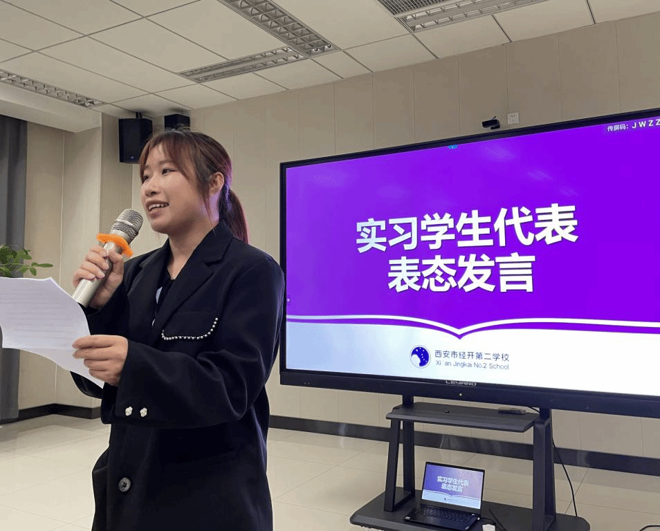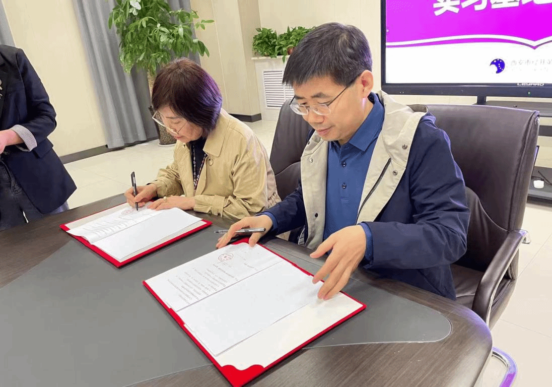 各位领导和实习学生的到来表示热烈的欢迎,并对西安市经开第二学校的概况做出介绍。随后,双方签订教育实践实习基地合作协议,并顺利完成鸭奈飞