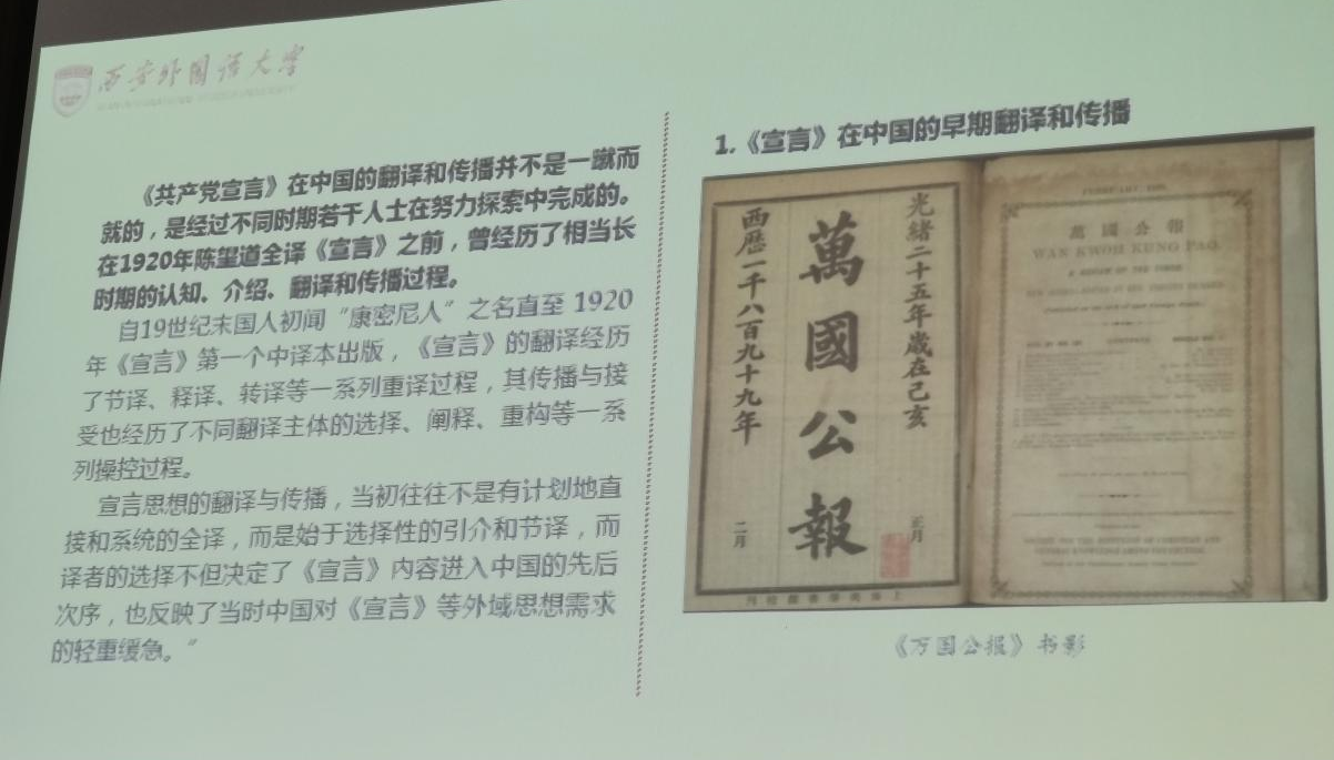 王启龙同志从《共产党宣言》(以下简称《宣言》)的海外传播、《宣言》在中国的翻译与传播、《宣言》的时代价值和现代启示等三个方面,对《宣言》的翻译与传播所经历的最初的艰难、曲折以及后来的迅速传播之过程进行了生动地讲解,重点梳理了《宣言》在中国的翻译与传播。他讲到,《宣言》在中国的翻译和传播不是一蹴而就的,是经过不同时期若干仁人志士在努力探索中完成的,而对《共产党宣言》孜孜不倦地探索和翻译传播,正是中国人民锲而不舍追求真理地生动体现。本次专题也是王启龙同志在“建党百年学术巡礼·人文社科学术系列讲座”的报告内容,但专题党课内容更加丰富,讲述更加生动,史料更加感人,也使得大家深刻理解,《宣言》为什么成为中国共产党建党的重要理论指引,为什么是中国共产党初心和使命的重要精神支柱。
