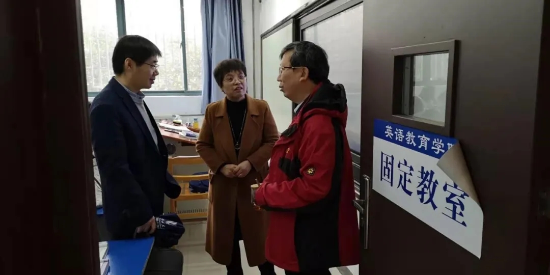 院长孙二军、书记姚玮、副院长王嘉铭的陪同下,对学院2018级英语专业3班的高级英语课程进行听课。