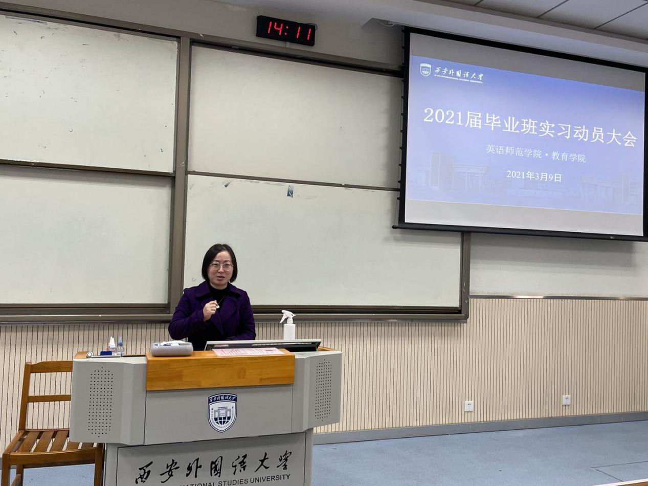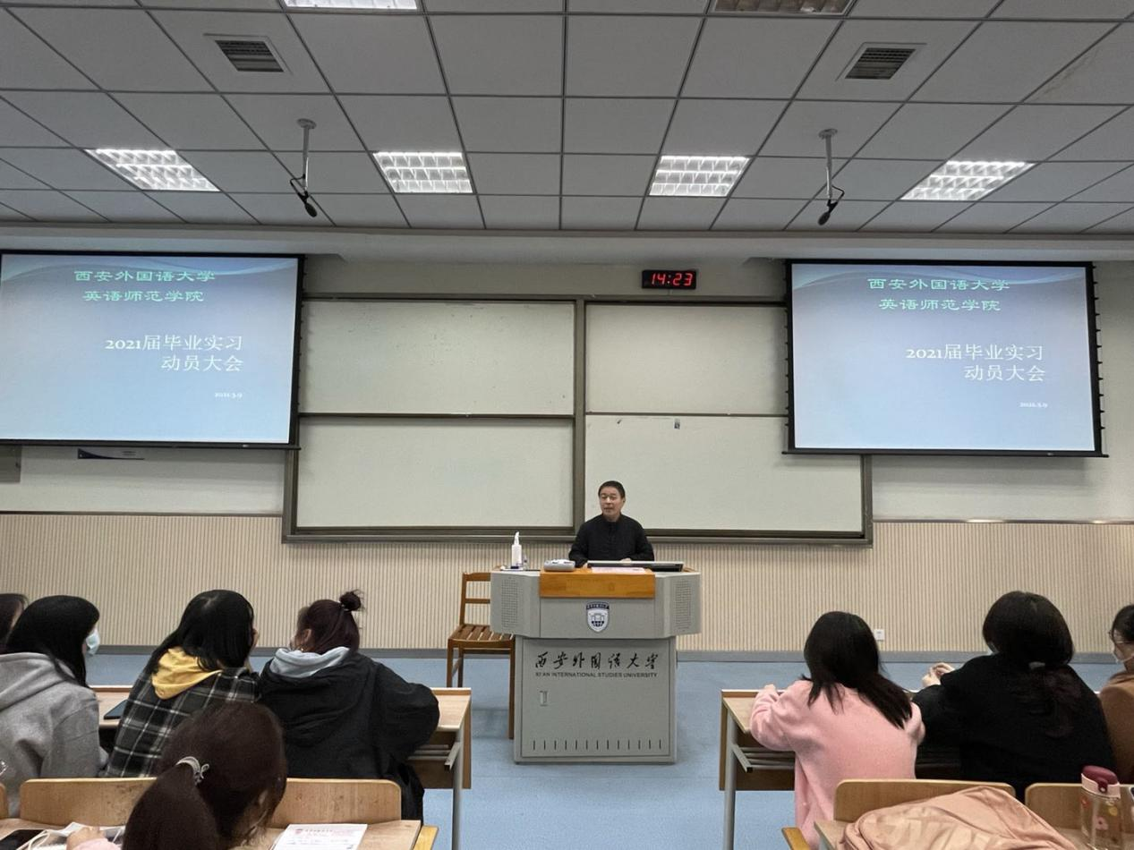 在SD106举行2021届毕业生实习动员大会。英语师范学院·鸭奈飞