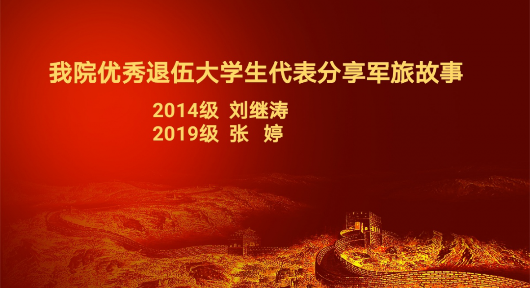 接着,学院优秀退伍大学生代表原服役于中国人民解放军66040部队的刘继涛和原服役于武汉火箭军指挥学院的张婷结合自身参军经历,详细讲述了其在部队的生活、训练、执勤等点点滴滴,情真意切、令人动容。分享结束后,参会同学就自己感兴趣的问题进行积极提问,现场交流热烈,气氛融洽。