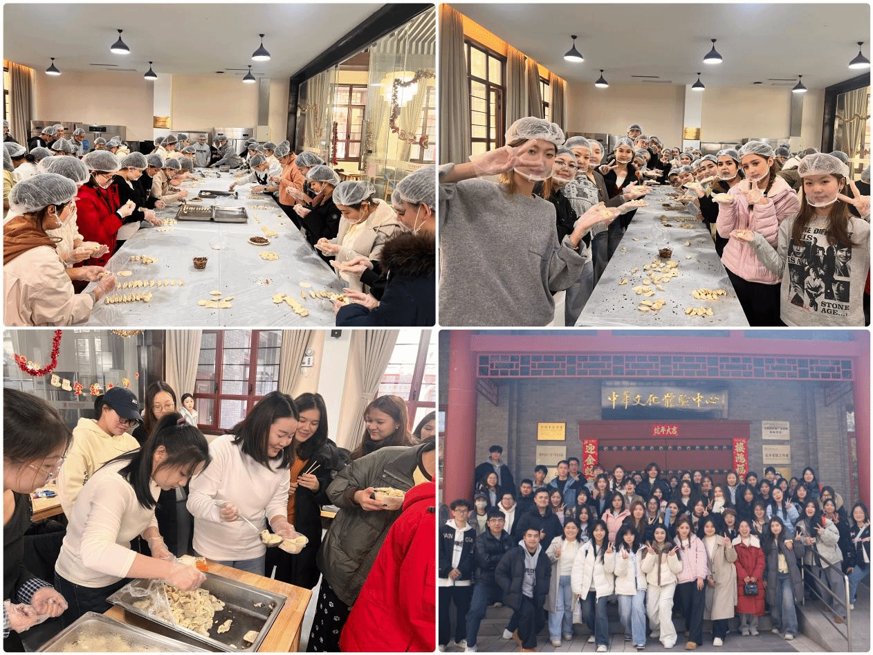 在中华民族传统节气冬至来临之际,少数民族预科班在雁塔校区中华文化体验中心开展了以“冬至共捏同心圆,四海同炊一釜香”为主题的师生包饺子活动。来自不同民族的师生们齐聚一堂,围在桌案前,擀皮、调馅、包捏,分工协作,欢声笑语不断。形态各异的饺子不仅包裹着美味的馅料,更蕴含着浓浓的师生情谊与民族团结之情。当热气腾腾的饺子出锅,大家共同品尝着自己的劳动成果,感受着“家”的温暖与节日的温馨。此次活动以美食为媒介,以劳动为纽带,有效促进了各民族同学之间的交往交流交融,生动诠释了“中华民族一家亲”的深厚情谊。