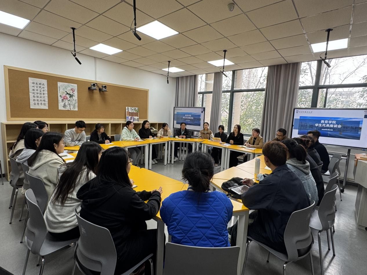 在JA207教室召开学生代表座谈会。学院党委书记梅林竹、党委副书记刘一静、各年级辅导员及研究生、本科生、预科生代表参加座谈。会议由刘一静主持。