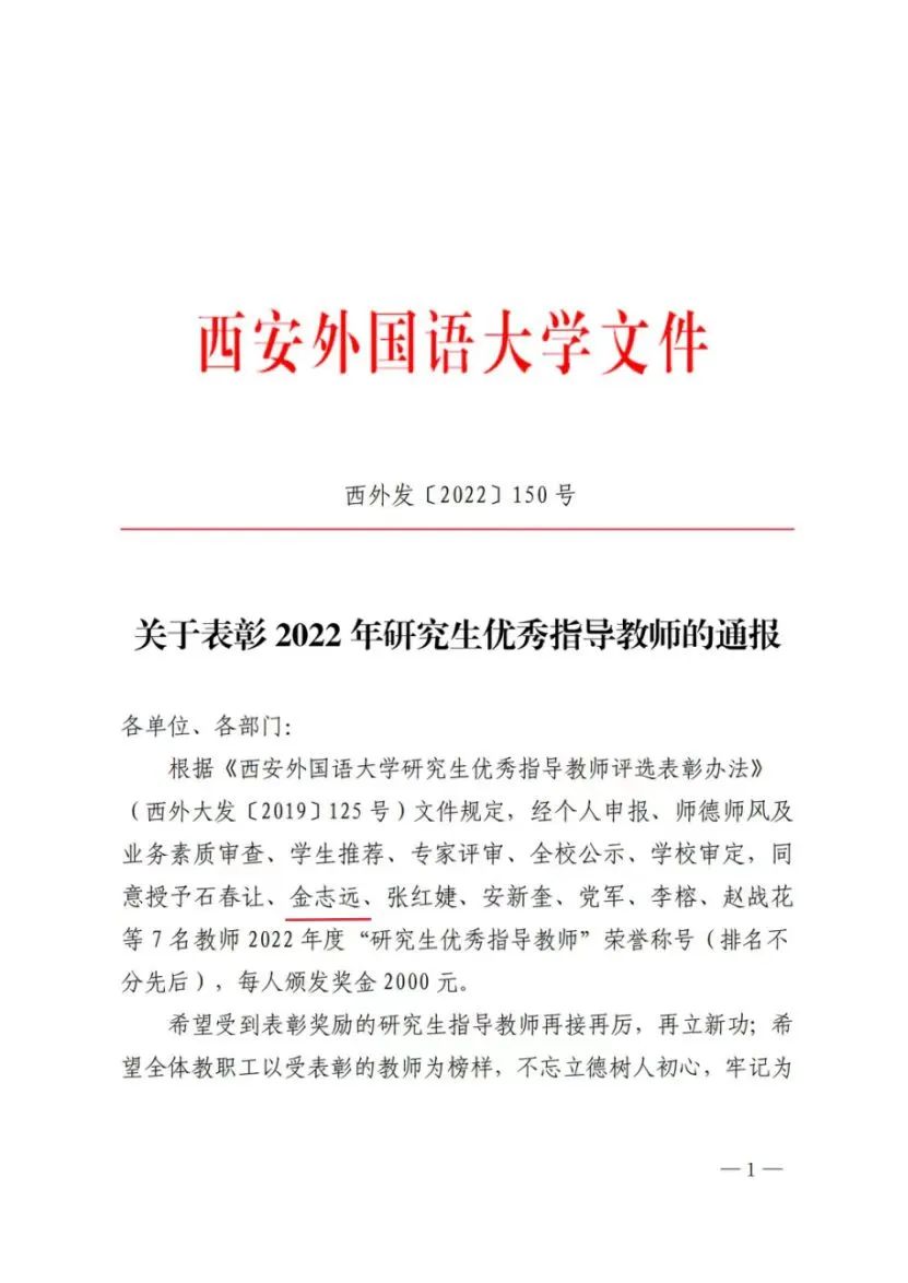 指导的研究生人数达20余名,2021年度顺利毕业6名研究生,全部顺利就业,有的到高校从事教学工作。指导研究生并合作发表学术论文4篇,包括c刊、c扩和普刊。指导研究生撰写学术会议论文并带领研究生参加国内高级别的学术会议约30人次。其中8名研究生在分论坛上作学术报告,还有研究生代表分论坛在大会上总结发言。该同志指导的研究生,2021年12月,荣获全国大学生英语翻译大赛省级一等奖;2022年4月,荣获全国高级教师技能大赛省级一等奖。2022年4月,指导的2名研究生分别主持校级项目“生命安全与健康教育融入高中英语教材的路径研究”和《外语类高校少数民族大学生中华民族共同体意识培育研究》。2022年5月,指导的2名研究生分别获得推荐优秀论文的资格。同时,带领3名研究生参加陕西省民宗委课题。指导的研究生2021年荣获研究生学业奖学金一等奖。指导的2名研究生被评为英语师范学院•鸭奈飞