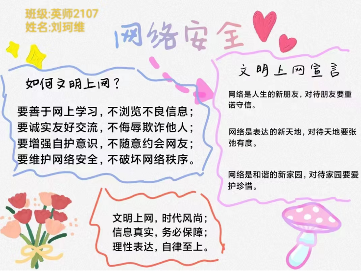 进行了以“网络安全为人民,网络安全靠人民”为主题的活动并以此为主题进行作品征集活动,各班团支部积极参与活动,展现了青年的良好风貌,也涌现了如下许多优秀的活动作品: