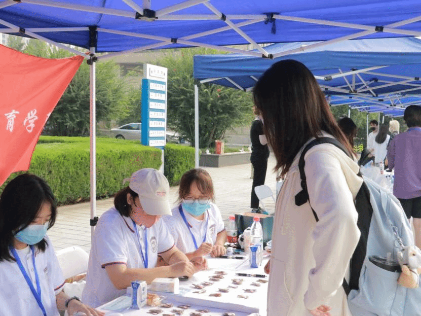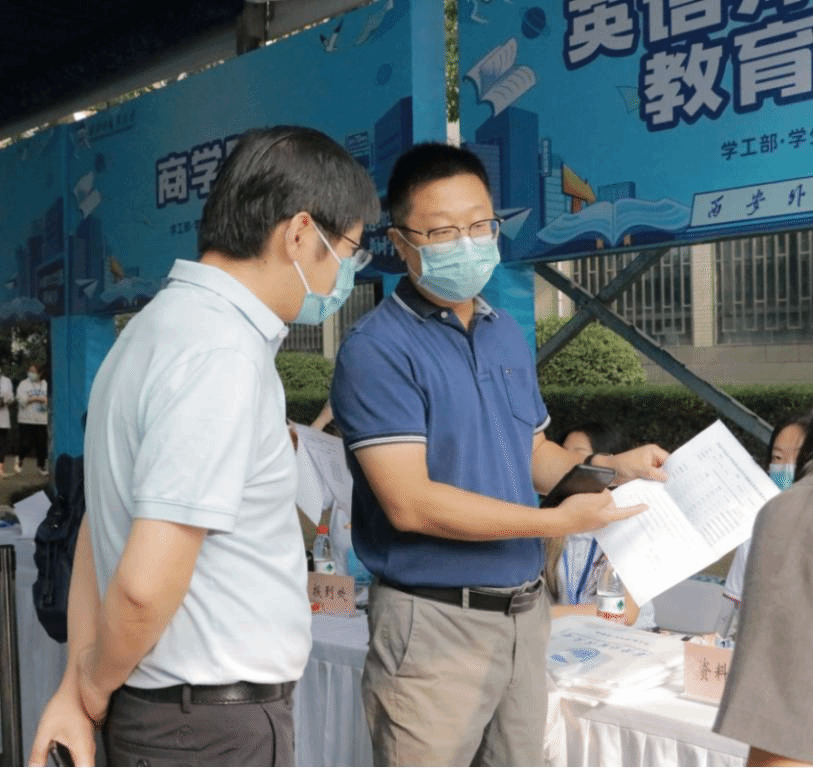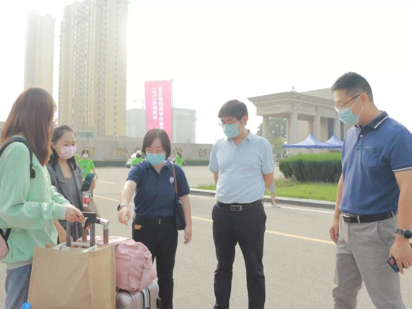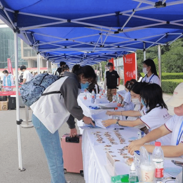 在两处迎新点,学院领导和老师正在安排迎新工作。虽然戴着口罩,但是脸上洋溢的笑容不会被掩盖,大家都怀着期待迎接你们的到来。