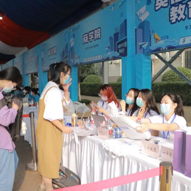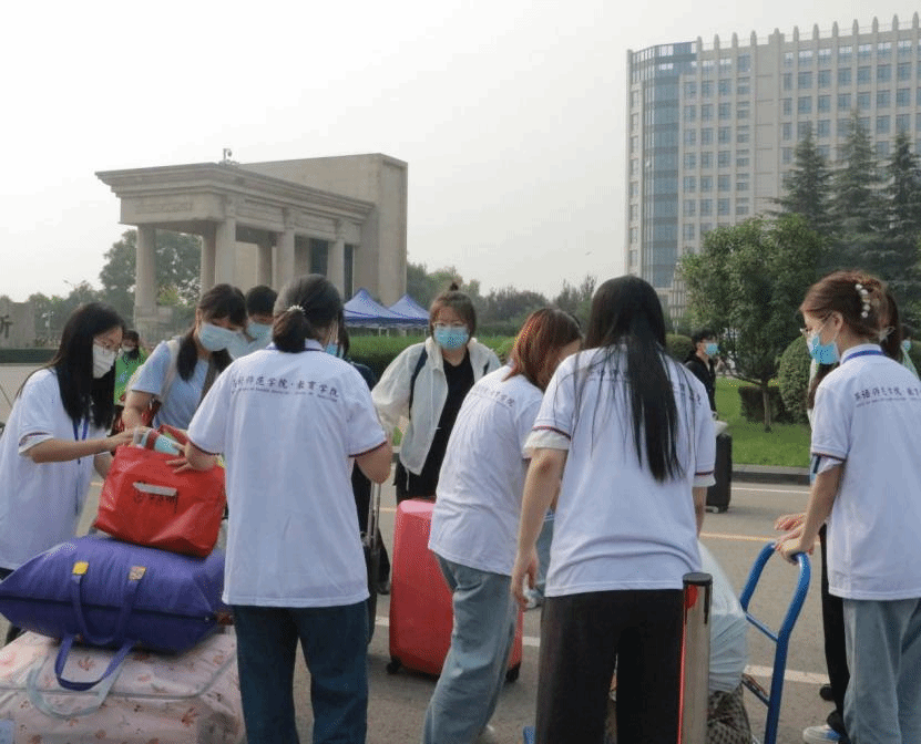早晨七点的天气正是凉爽,位于学校东门和栾树大道的两处迎新点已经有志愿者就位了。他们接过手中行李,耐心地指引大家前往迎新点。他们的热心帮助和无私奉献是来自英师大家庭的第一份温暖。