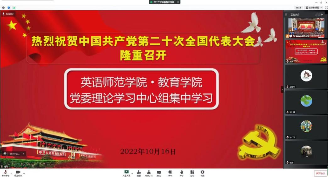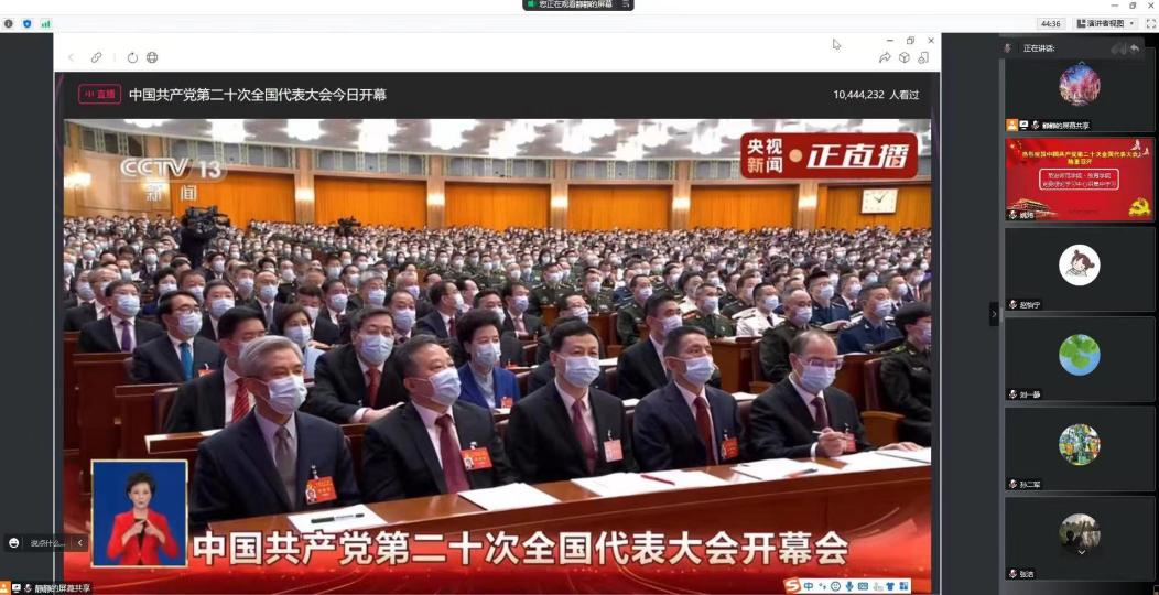 积极组织全体师生,以党委理论学习中心组、各师生党支部、团委学生会、各年级团支部等为单位,通过线上线下相结合的方式收听收看党的二十大开幕会。