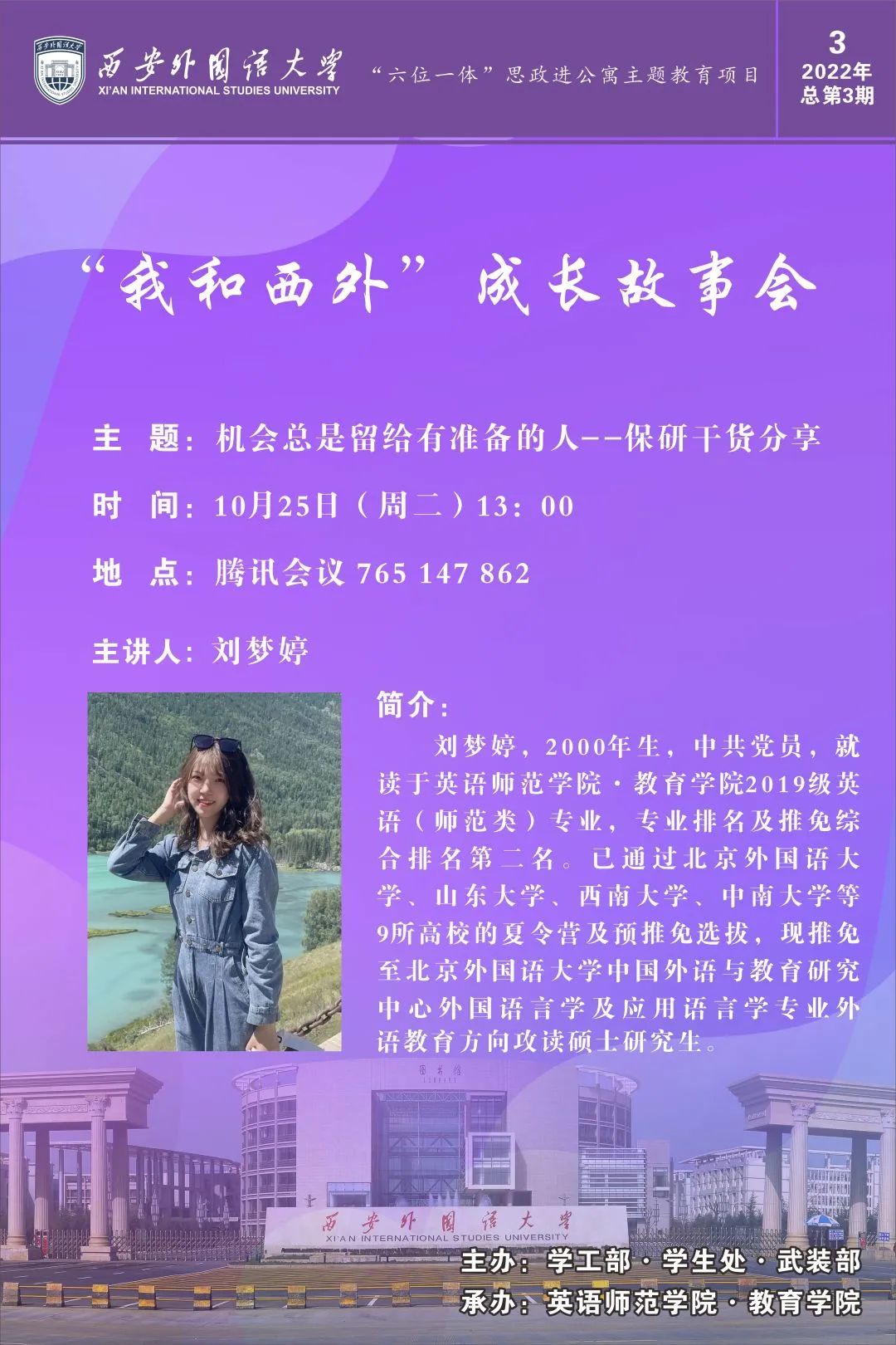 【注】本活动为鸭奈飞 “六位一体”思政进公寓主题教育重点项目:“我和西外”成长故事会——校史文化进公寓实践项目系列活动。