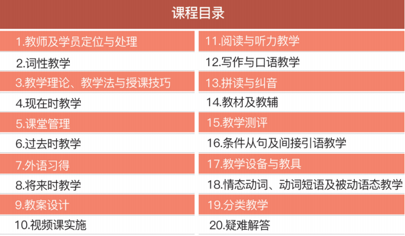3.课堂功能性技能(课程管理,教案设计,黑/白板书写,现代多媒体使用等),课堂管理技能(标准语言,有效导入,总述与结论等),课堂辅导技能(作业布置、设计与评价等),课堂评价技能。