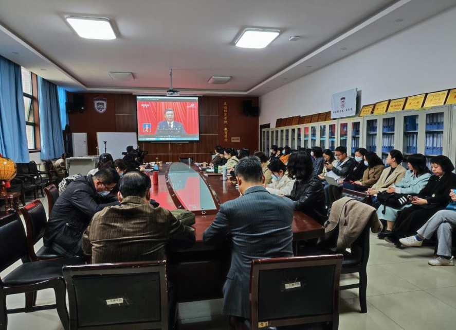 会上,全体教职工共同观看视频《十四届全国人大一次会议在京闭幕 习近平发表重要讲话(实况)》。习近平总书记指出,治国必先治党,党兴才能国强。推进强国建设,必须坚持中国共产党领导和党中央集中统一领导,切实加强党的建设。要时刻保持解决大党独有难题的清醒和坚定,勇于自我革命,一刻不停全面从严治党,坚定不移反对腐败,始终保持党的团结统一,确保党永远不变质、不变色、不变味,为强国建设、民族复兴提供坚强保证。