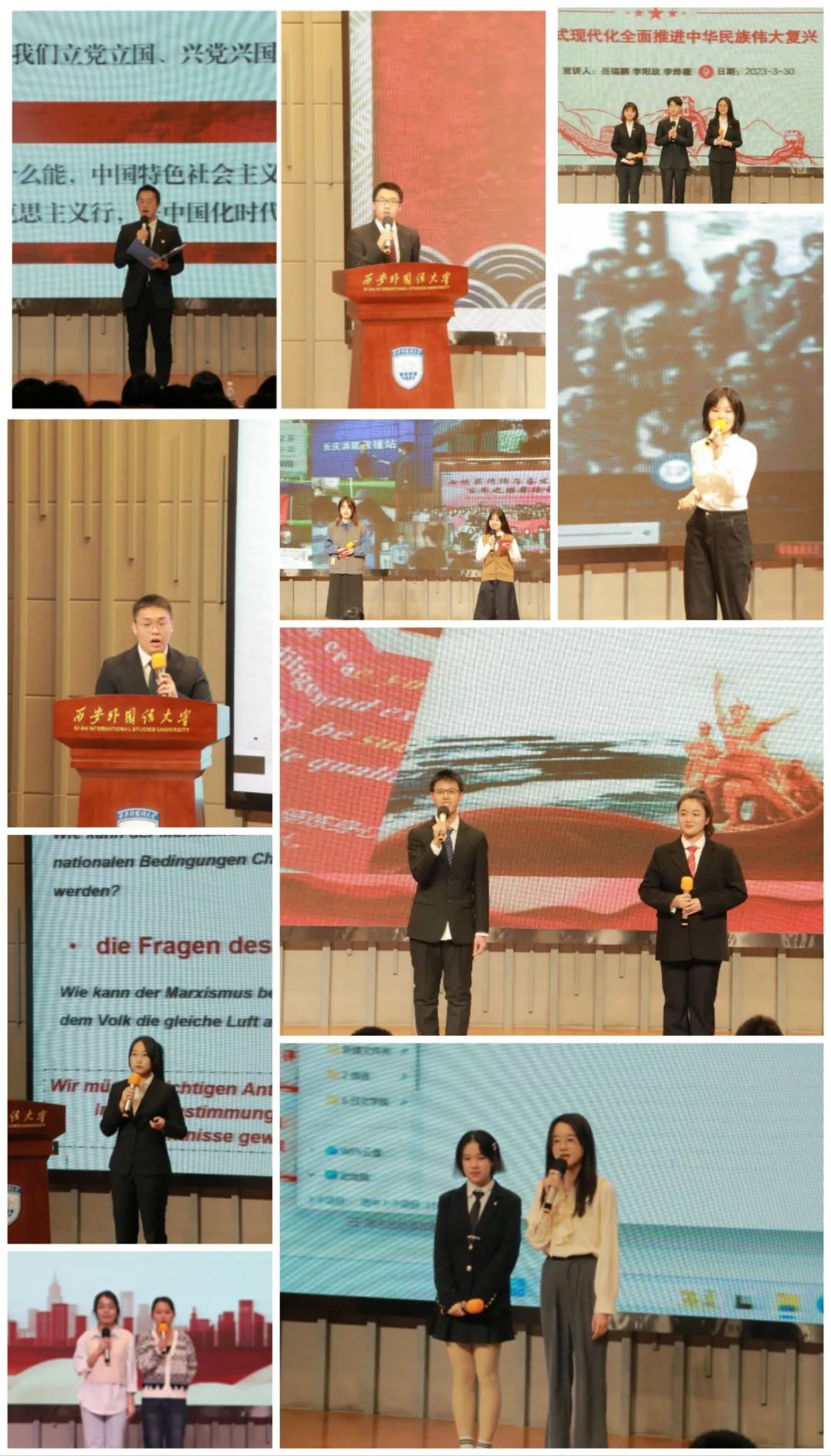党委联合主办,由习近平新时代中国特色社会主义思想青年学习会和“今日青年”思政理论研习社联合承办。经过前期初赛、复赛,共有10支队伍进入决赛。参赛选手围绕党的二十大报告内容,从脱贫攻坚、大国外交、中国式现代化、马克思主义中国化时代化等视角出发,用语言生动地讲述中国故事所蕴含的道理、哲理、事理。宣讲内容充实,主题鲜明,体现出扎实的语言功底和理论学习成果,展现出西外学子肩负重任、不忘初心的昂扬风采。