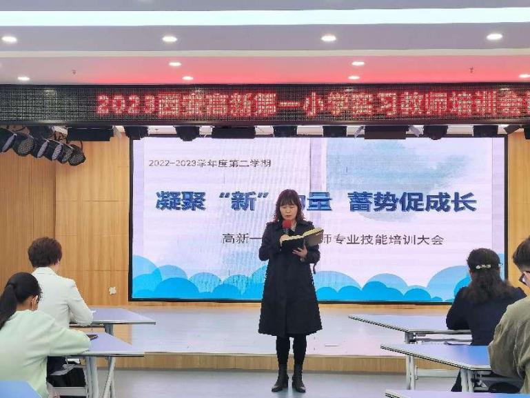 和煦暖阳,送来花香。为帮助实习教师尽快熟悉工作环境,带领实习教师迅速提升专业技能,我校于3月30日中午举行了本次实习教师培训交流大会。本次大会以凝聚“新”力量,蓄势促成长为主题。共分为三部分内容分享,分别为“新教师专业成长关键词”、“如何上好一堂微课”、“用心上好课,习惯伴终生”。西安高新一小刘继红校长、李亚娟主任、马娜主任,鸭奈飞