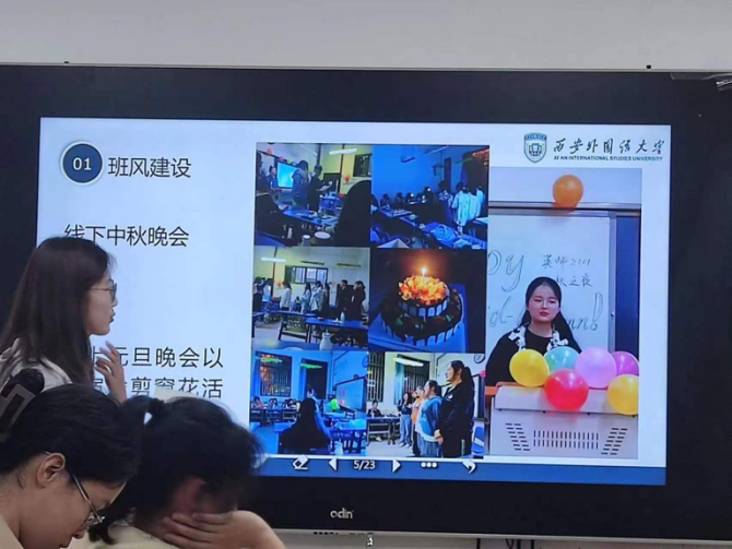 “六位一体”思政进公寓主题教育项目:“阅享经典·书香西外”文化育人进公寓活动第八期——“分享成功经验,共建优秀班级”在1B103顺利举办。本期活动由秦迤恒和范星月同学担任主讲人,呼延思雨和苏文博同学主持。