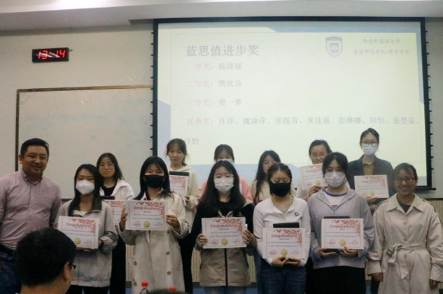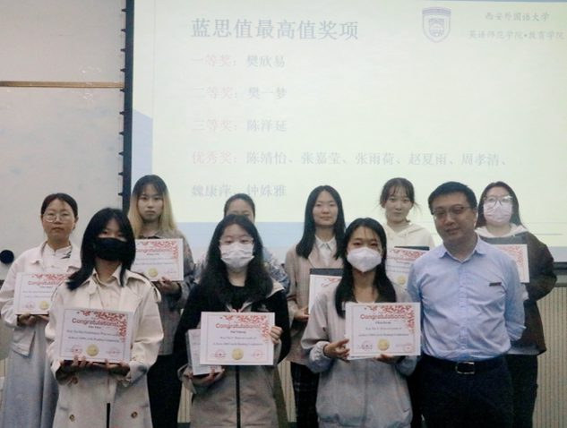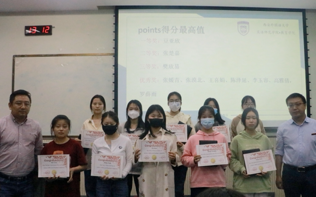 随后进入颁奖环节,王嘉铭副院长、孙韶鹏老师分别为获得蓝思值最高值奖项、points得分最高值和蓝思值进步奖的同学颁发奖状和奖品。为获奖同学颁奖,鼓励同学们积极使用蓝思阅读系统提升语言能力、拓宽国际视野。