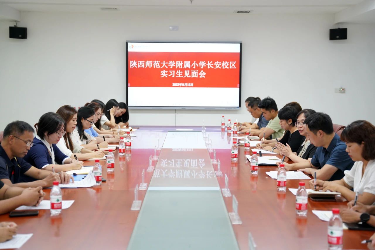 党委副书记刘一静、实习带队教师任凤芹、樊莲花,陕师大附小全体实习指导教师,以及6名实习生参加本次会议。