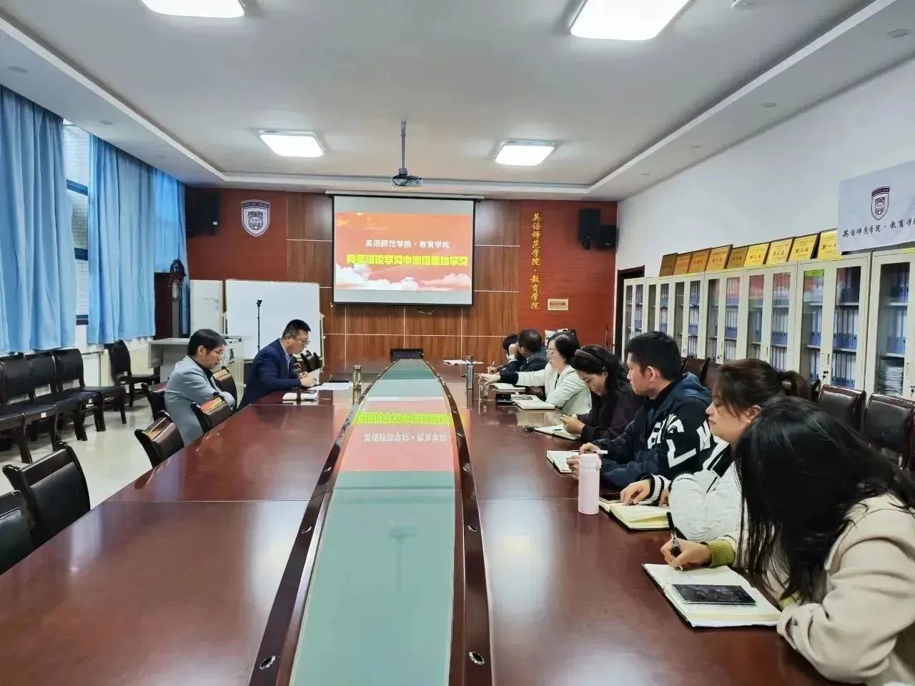 2023年11月3日,学院党委理论学习中心组在H107会议室举行本学期第4次集体学习,中心组全体成员、各党支部书记参加学习,集体学习由党委书记姚玮主持。