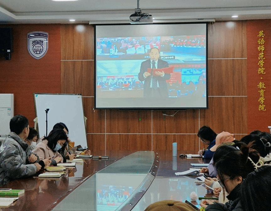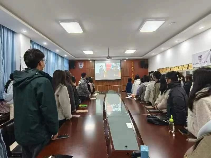 在H107组织集中观看国家宪法日教育系统“宪法晨读”活动直播,党委副书记刘一静、各年级辅导员及大一、大二、大三和研究生学生代表到场参会,学院其他学生在宿舍和固定教室同步观看直播。